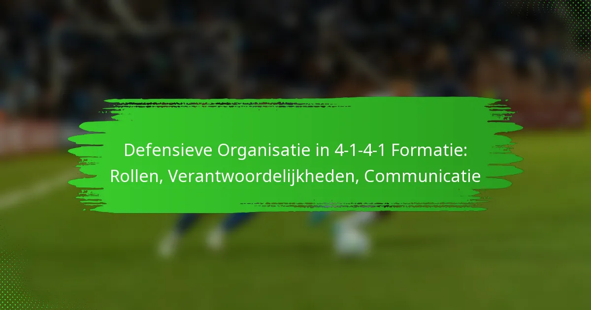 Effectieve defensieve organisatie in een 4-1-4-1 formatie is afhankelijk van duidelijke rollen, sterke communicatie en aanpassingsvermogen aan verschillende aanvallende strategieën. Teams moeten zich richten op het behouden van compactheid en het aanpassen van hun defensieve vorm om bedreigingen effectief tegen te gaan.