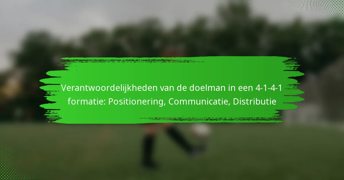 In een 4-1-4-1 formatie speelt de doelman een cruciale rol die effectieve positionering, duidelijke communicatie en nauwkeurige distributie omvat. Deze verantwoordelijkheden zijn essentieel voor het waarborgen van een solide verdediging en het faciliteren van soepele overgangen naar de aanval. Door effectief te communiceren met teamgenoten en strategische distributiemethoden toe te passen, helpt de doelman de teamstructuur te behouden en de algehele prestaties op het veld te verbeteren.