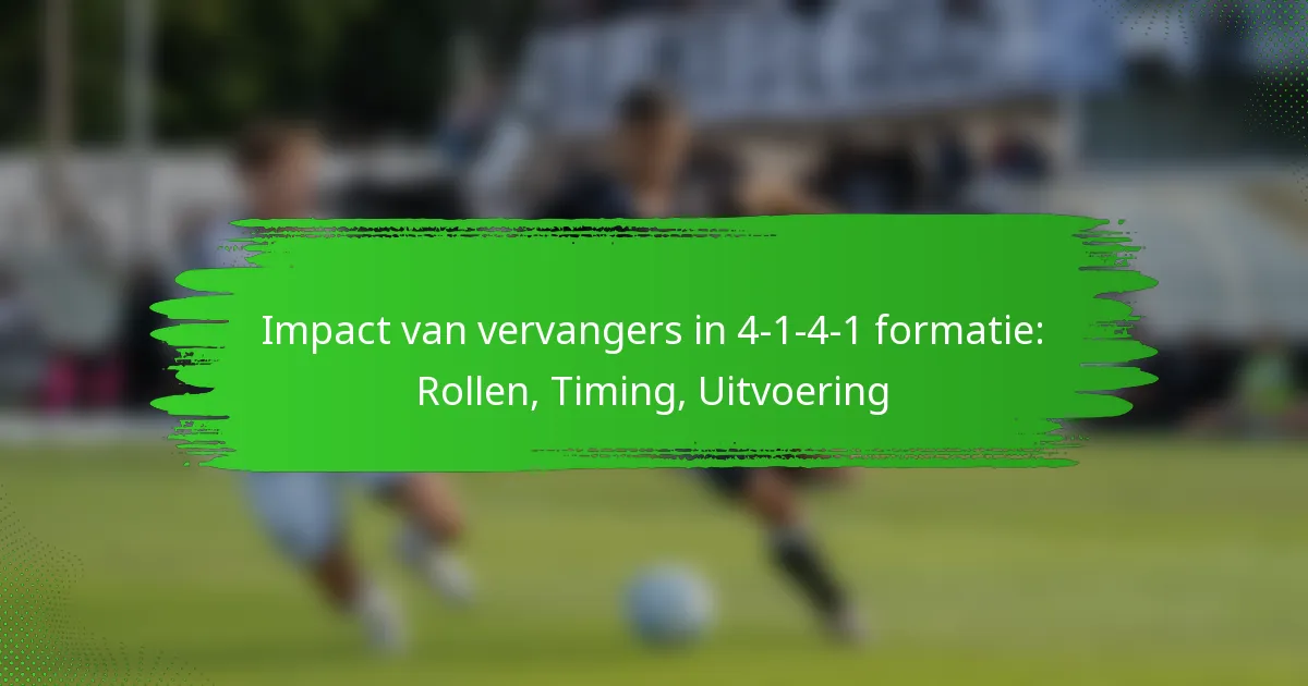 Vervangingen in een 4-1-4-1 formatie zijn cruciaal voor het veranderen van de dynamiek van een wedstrijd, aangezien hun rollen de focus kunnen verschuiven tussen verdediging, controle op het middenveld en aanval. De timing van deze vervangingen is essentieel; vroege wijzigingen kunnen energie en tactische verschuivingen injecteren, terwijl late aanpassingen de teamcohesie kunnen verstoren. Succesvolle uitvoering hangt af van zorgvuldige voorbereiding voor de wedstrijd en aanpassingsvermogen in real-time, wat de prestaties en responsiviteit van een team tijdens de wedstrijd aanzienlijk kan verbeteren.